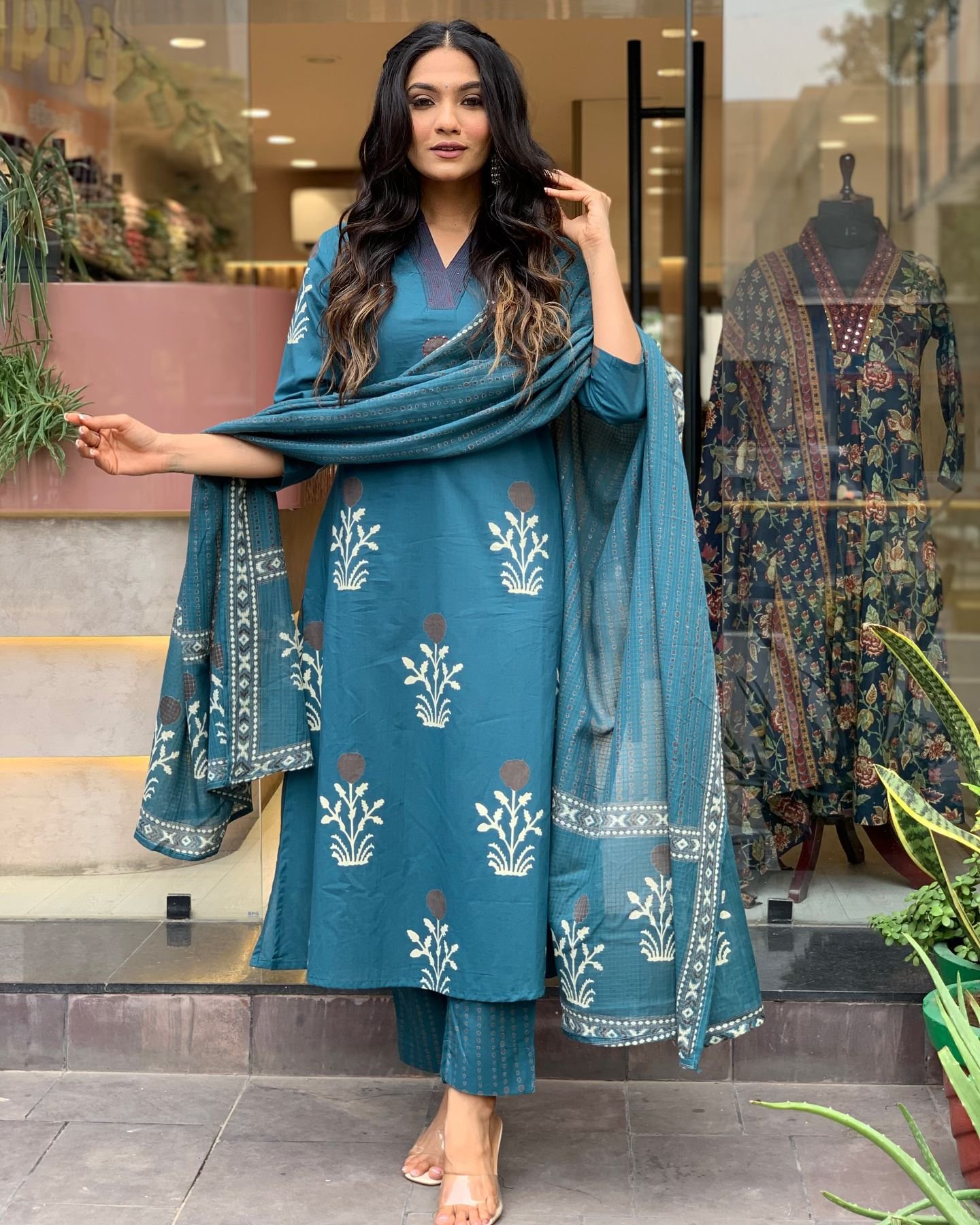 This ocean blue kurti set brings effortless charm. With a simple straight-cut silhouette, it blends style with everyday comfort.